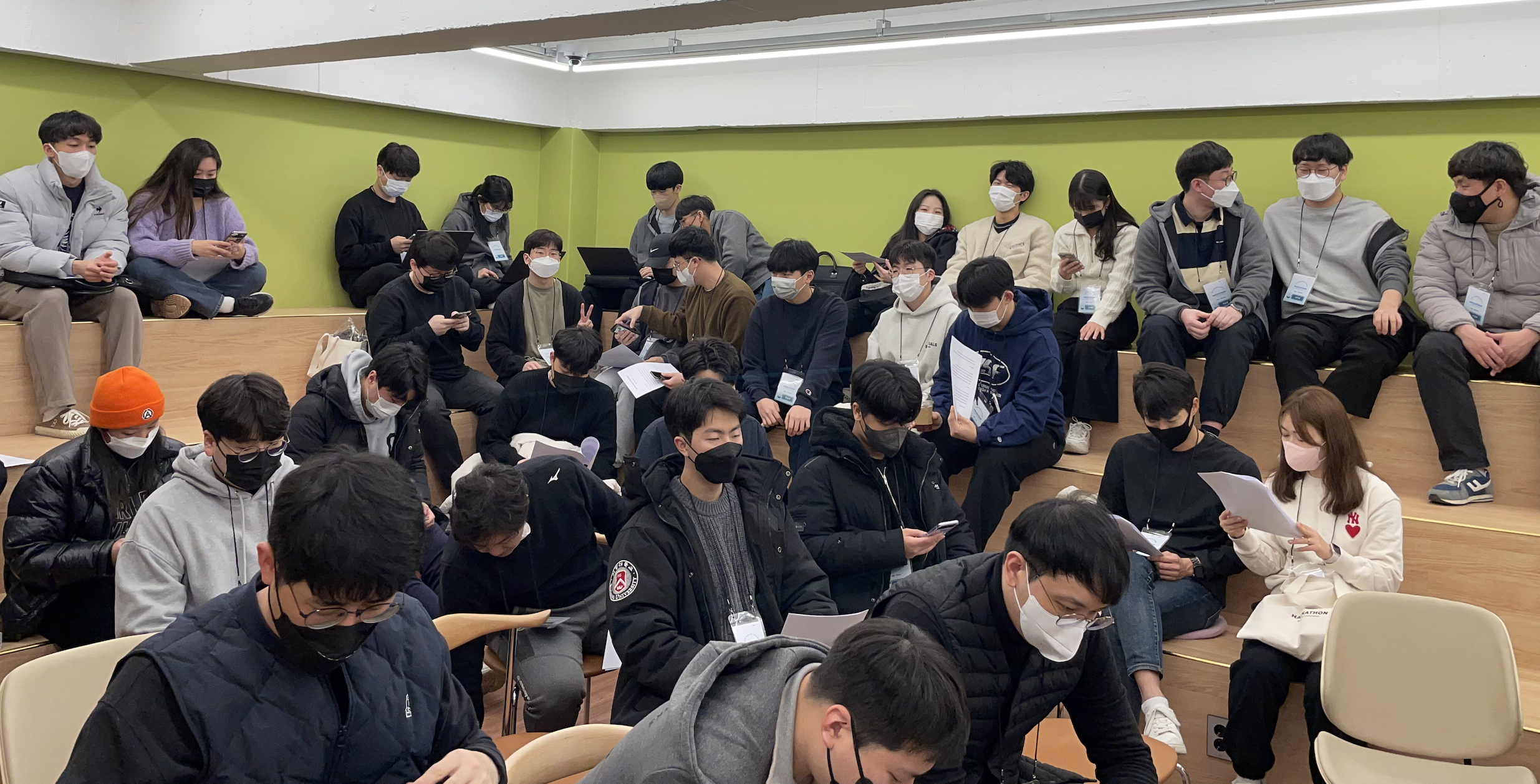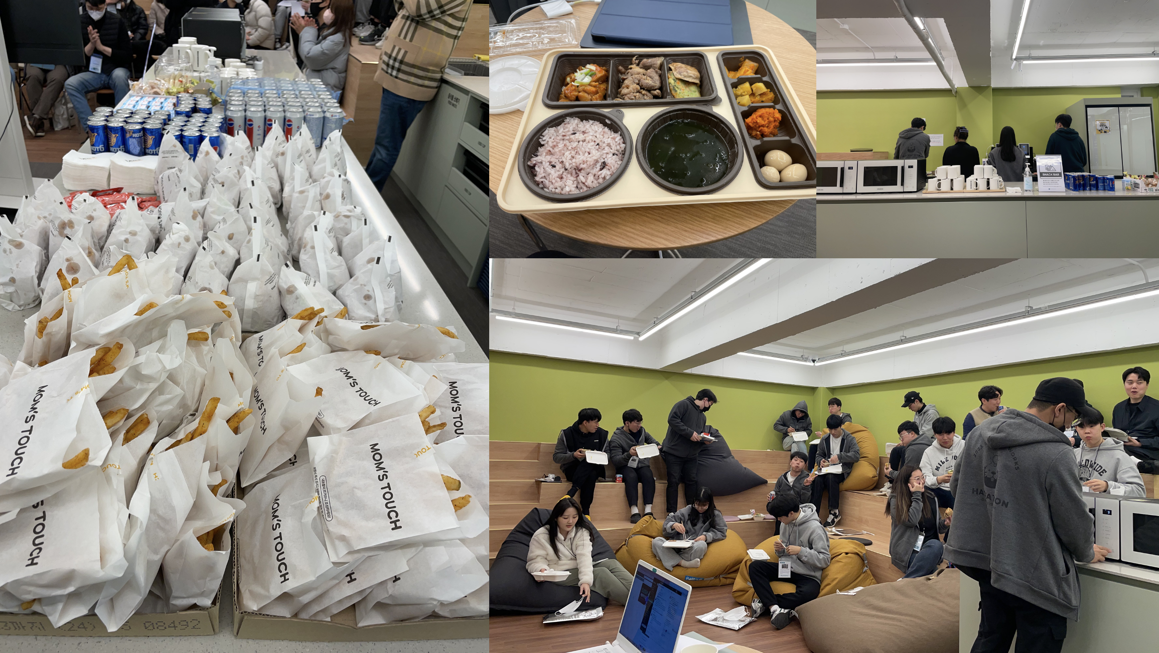 개선해야할 부분이 도출되기도 했지만, 대회를 회사내에서 진행을 했습니다. 그래서 회사의 1층 라운지와 회의실, 지하의 전시실을 이용할 수 있도록 했습니다. 그래서 어떤 팀은 회의실 방을 받고, 어떤팀은 약간 오픈 공간을 배정받게 되었습니다. 그래도 2박3일간 매우 열심히들 활동을 시작했습니다.