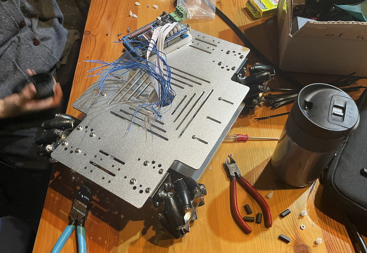 메카넘휠을 이용한 플랫폼에 전자석을 붙인 작품을 만들고 있습니다. 바닥에 떨어진 나사를 정리하는 것이 스트레스였는데 해결하고 싶은 욕망이 표출된거라고 하네요^^