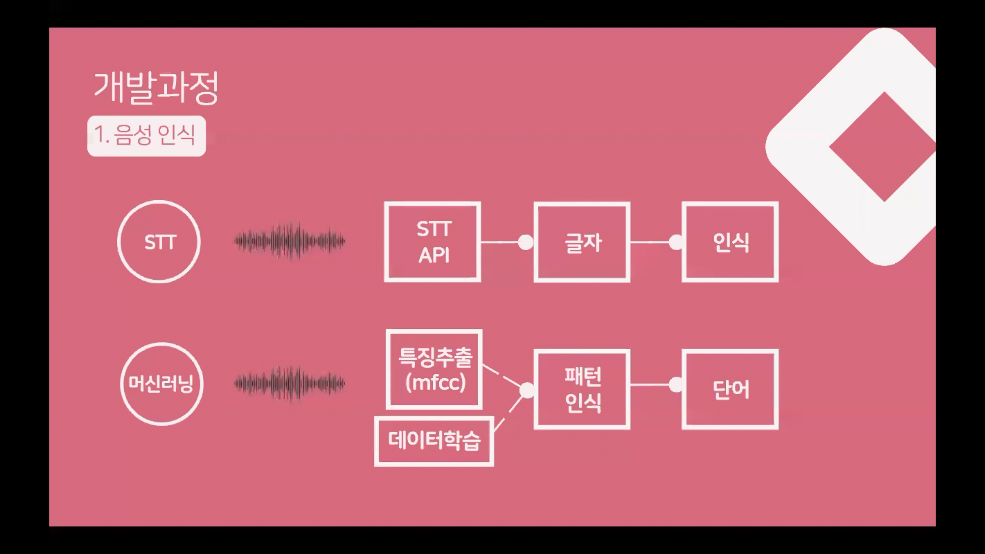 음성인식은 주파수영역으로 변환한 후 머신러닝을 사용해서 예측을 하고 있습니다.