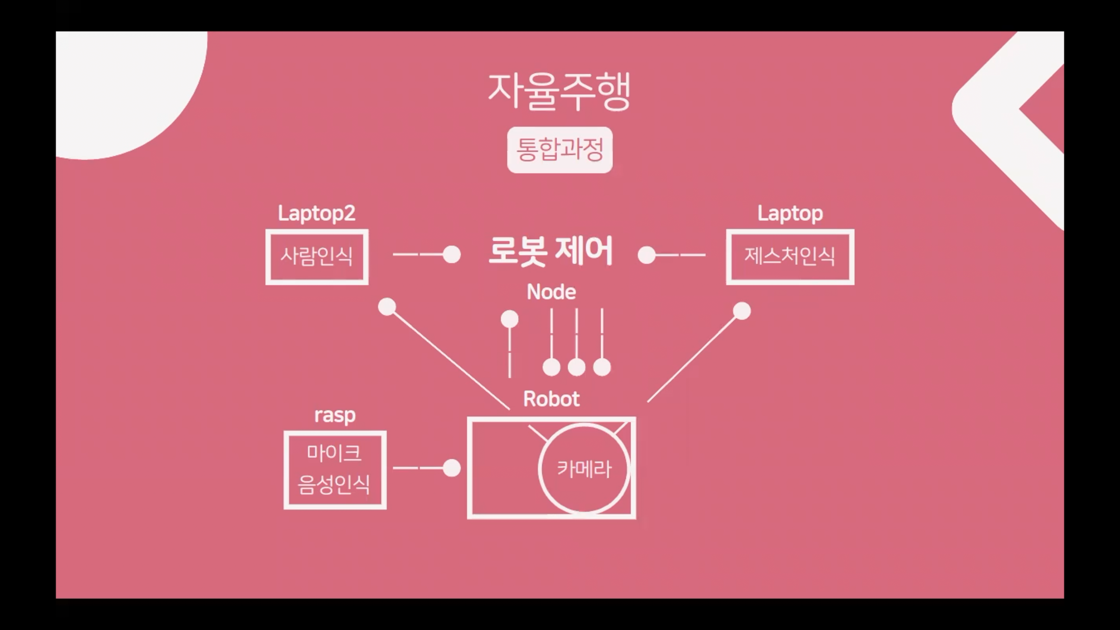 이번에 소개할 프로젝트는 반려로봇 프로젝트입니다. 반려로봇은 주행기능, 영상인식, 소리인식 등의 기능을 모두 구현하려고 노력했습니다. 이 친구들도 AI 로봇이란느 키워드로 수업을 시작한지 5개월 만에 시작하고, 한 달 정도의 기간동안 완성한 프로젝트입니다.