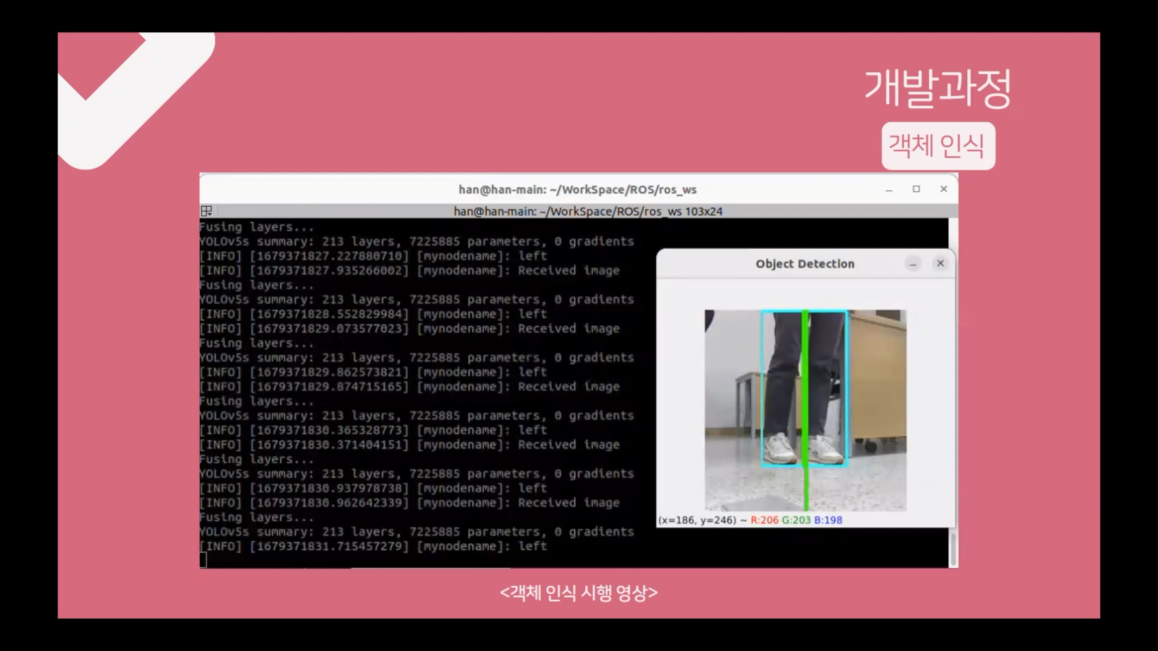 로봇이 바닥에 붙어 있으니 사람의 다리도 잘 인식하도록 하고
