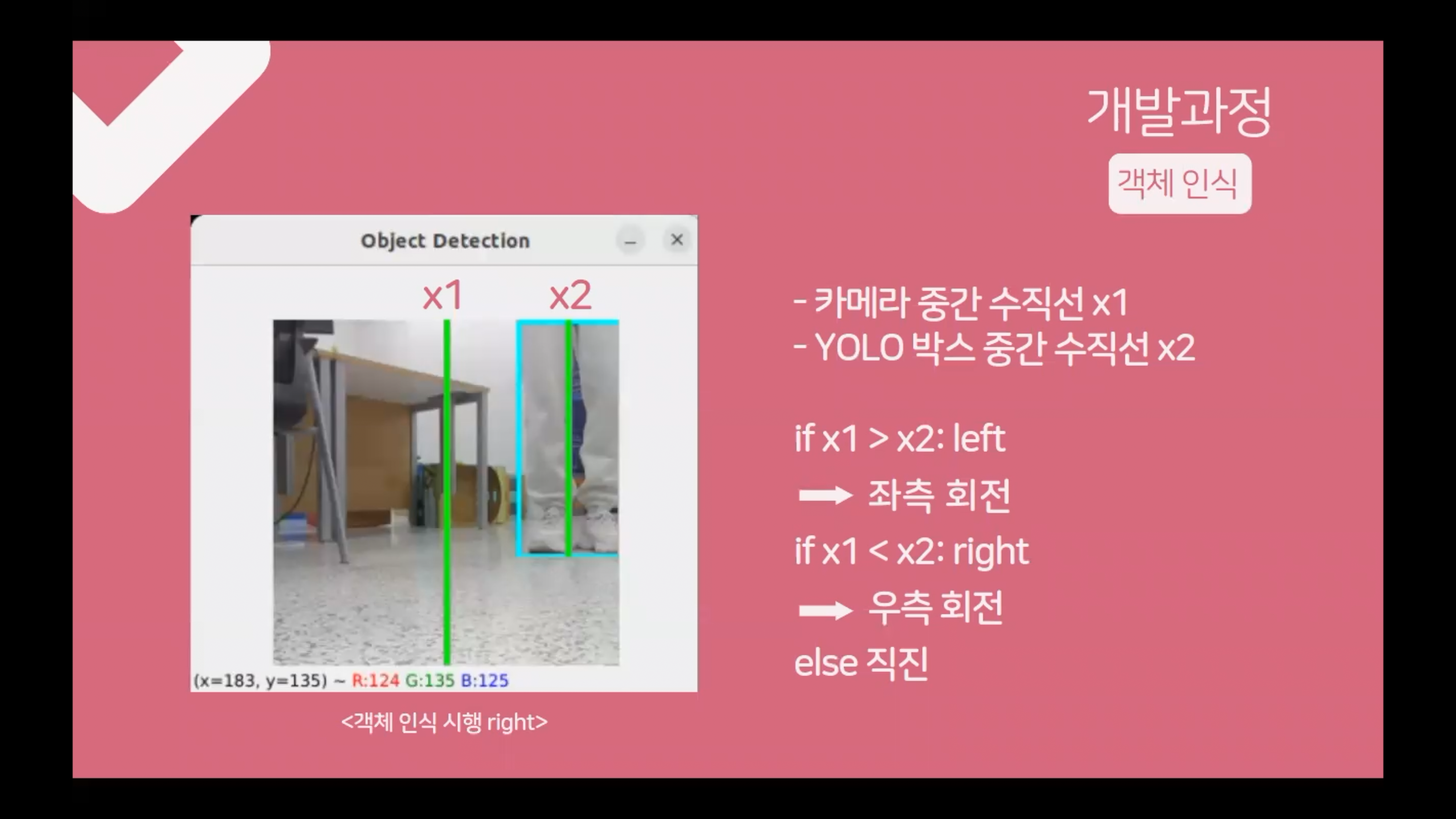 로봇이 바닥에 붙어 있으니 사람의 다리도 잘 인식하도록 하고