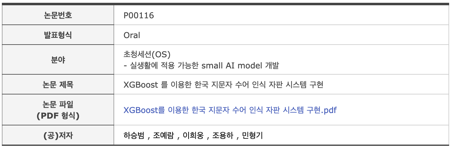 수어 중 지문자 수어를 인식하는 모델을 개발한 팀입니다.