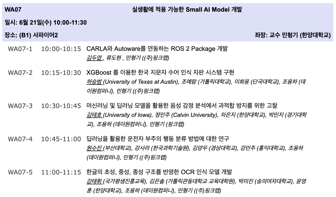 23년 6월 21일에 강원도 삼척 쏠비치에서 제어로봇시스템 공학회의 ICROS 학회가 열렸습니다. 작은 회사를 운영하면서, 교육도 하면서, 개발도 하는건 알겠는데 갑자기 왠 학회요? 네. 이번에 참가했습니다. 학회 등록비는 제로베이스를 운영하는 데이원컴퍼니에서 고맙게도 지원했으며, 제가 제로베이스의 수업의 일환으로 진행되는 PBL 수업에 참가한 수강생들 4팀, 애드인에듀에서 제 수업을 들은 친구들 1팀, 이렇게 5팀이 논문을 발표하고, 교신저자로 제가 모두 참여했습니다.
