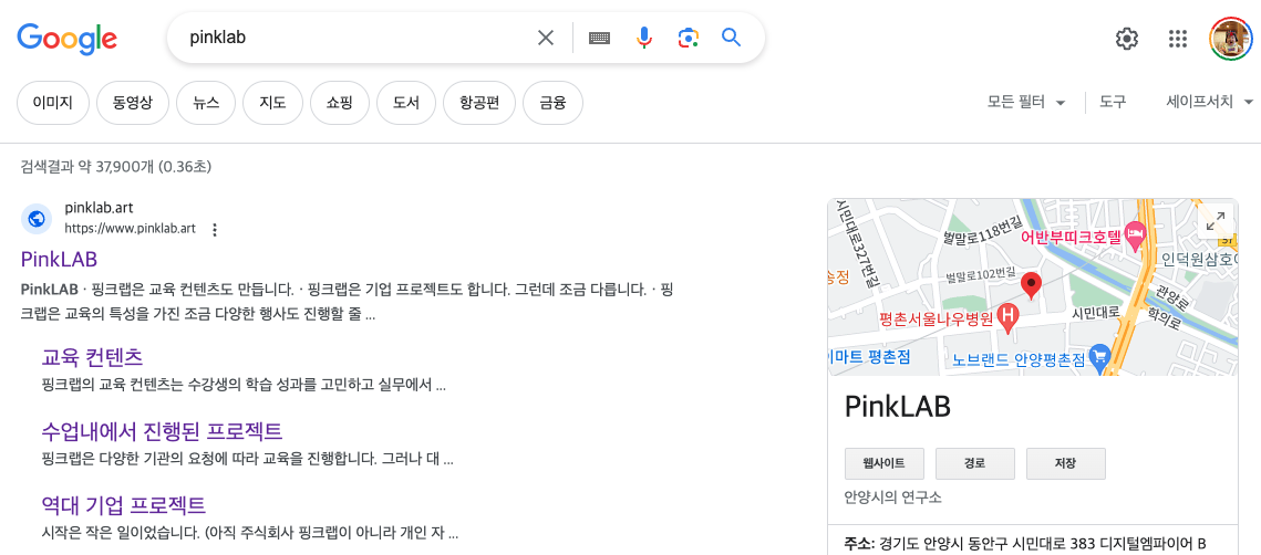 이제 구글에서 pinklab이라고 검색하면 저렇게 회사 소개도 보입니다.^^.
