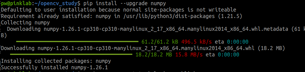 이 때는 pip install --upgrade 명령으로 numpy의 버전을 올려주면 해결이 됩니다.