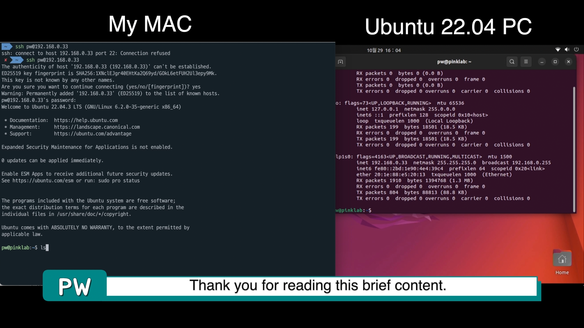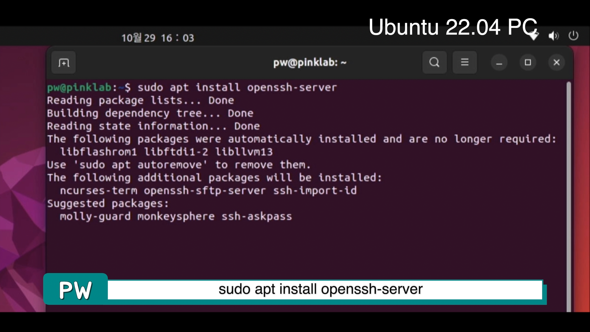 저는 아래 그림처럼 우분투 22.04가 설치된 pc로 제 맥에서 ssh로 접근하려고 하는데요.