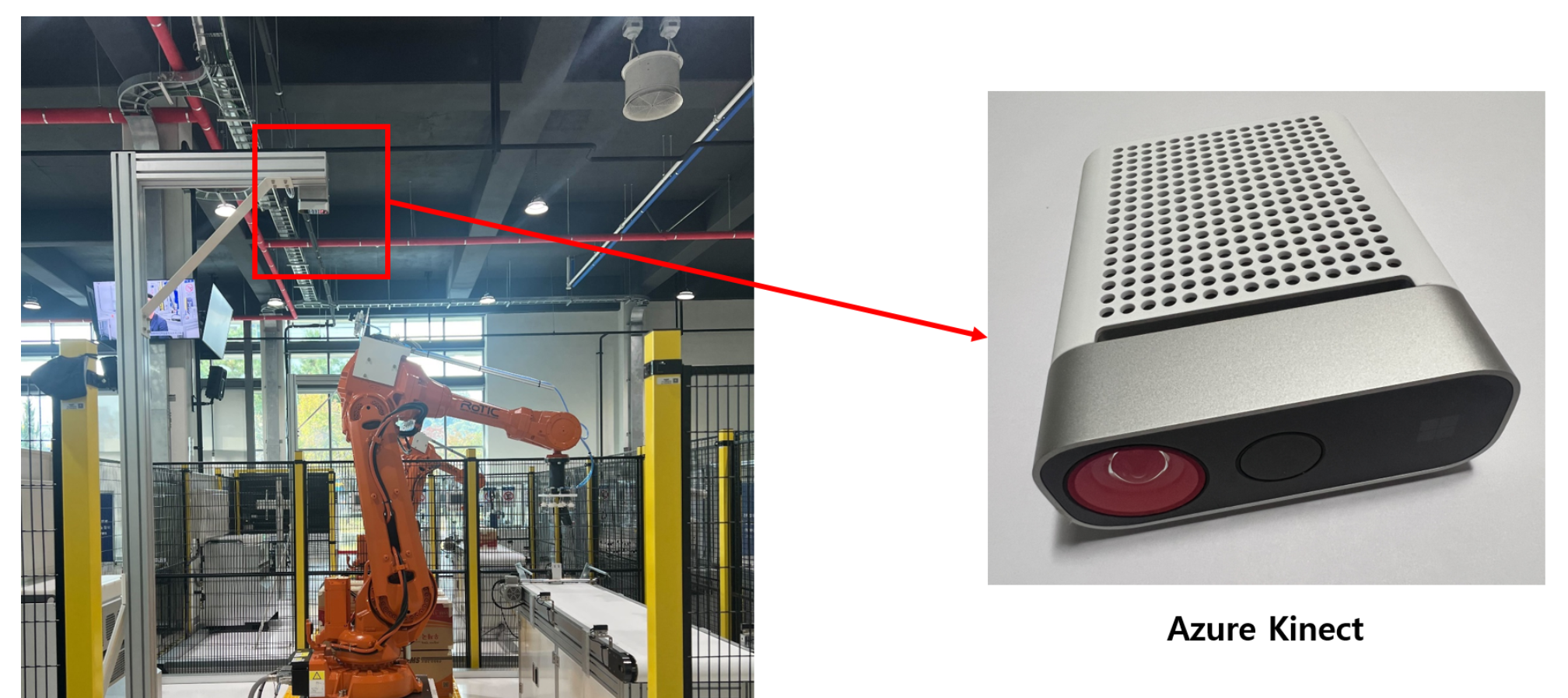 거기에는 Azure Kinect 센서가 이미 장착되어 있었습니다. 우리는 단종된 저 아이말고 D435로 먼저 개발하고 현장에 맞춰 적용을 했습니다.
