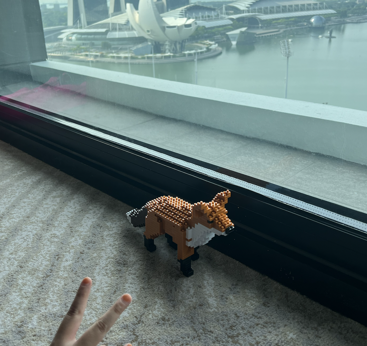 그리고 저 쇼파도 좋았습니다. 아까 이야기드렸지만, 마리나 베이 샌드 호텔이 보이는 풍경이 생각보다 꽤 좋습니다. 오른쪽 작은 손과 레고는 싱가폴 유니버셜 스튜디오를 가서 산 것인데, 저렇게 계속 조립을 하네요^^