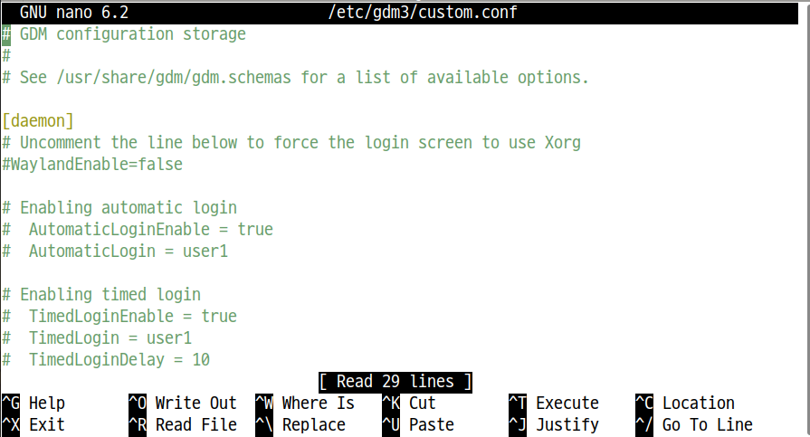 그래서 /etc/gdm3/custom.conf 파일을 열어서,