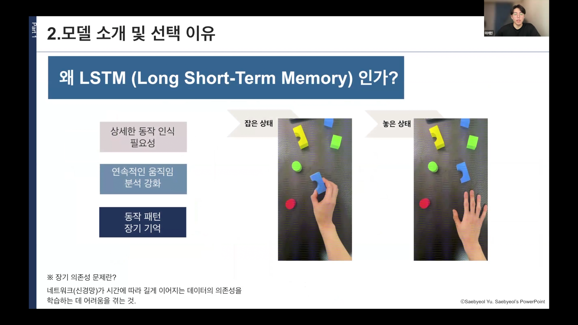 이 팀은 블록을 잡고 있다. 잡고 움직이고 있다 등을 인식하고 싶었기 때문에 LSTM을 사용하게 되었습니다.