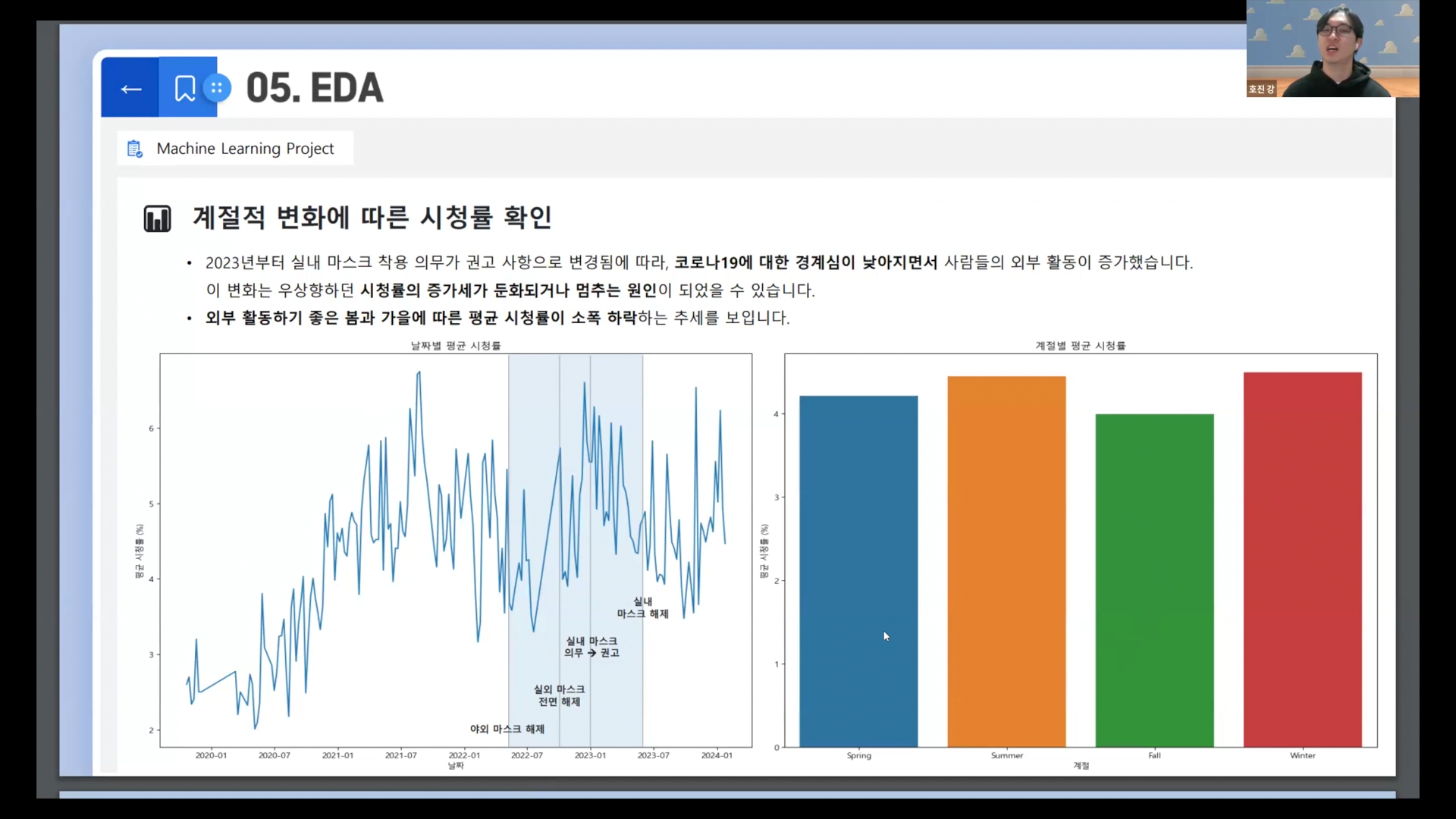 계절적 변화나 국가적 이벤트(코로나)에 대해서도 분석 범위에 넣어서 고민을 하고 있구요.