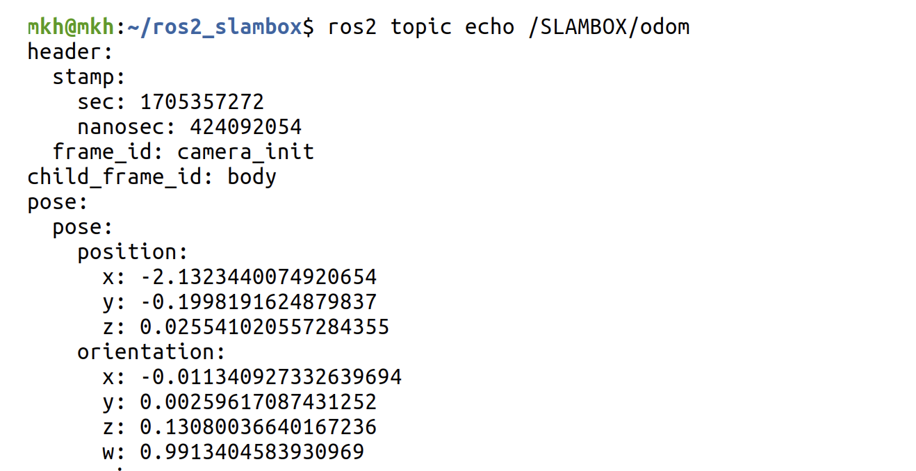 Odom 토픽도 잘 들어옵니다.
