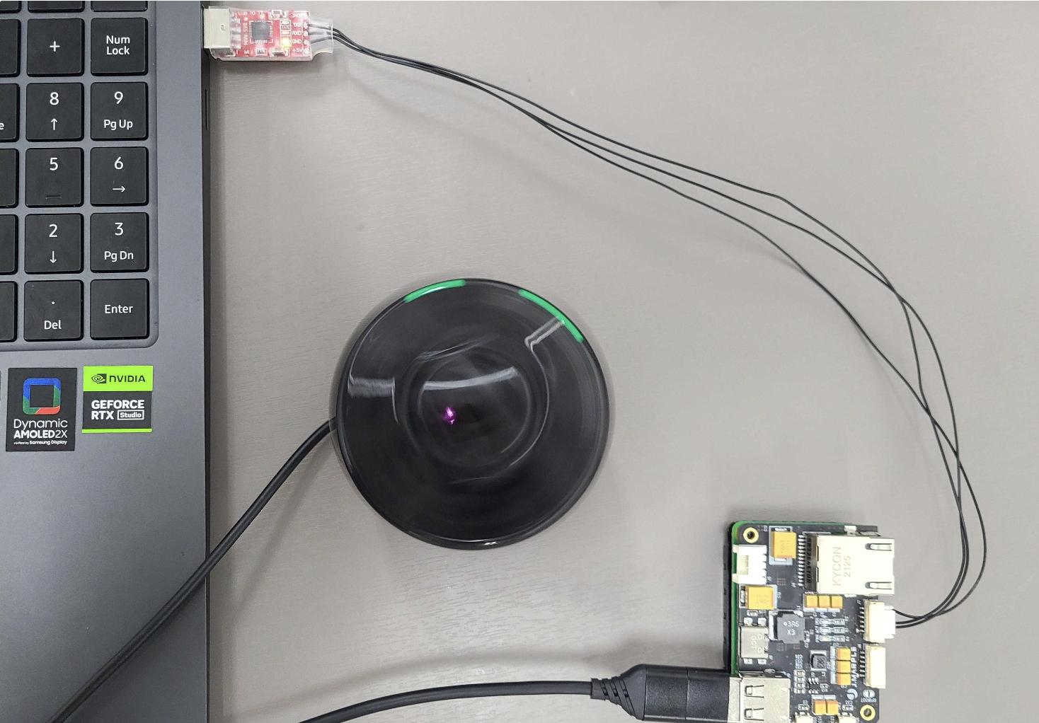 요건 보드와 라이다, 그리고 PC를 연결한 모습입니다.