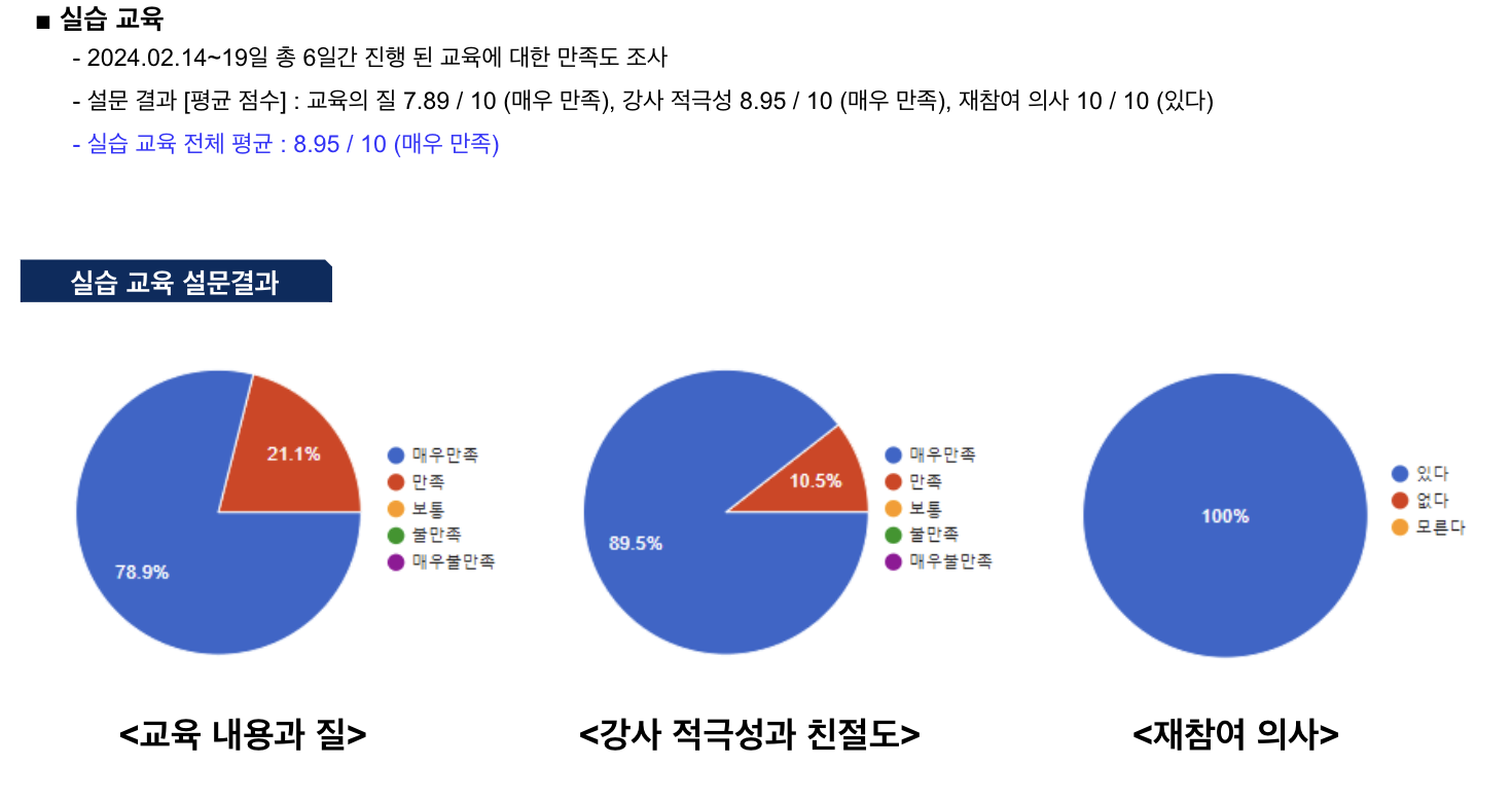 저희 핑크랩이 진행한 실습교육에 대한 만족도 입니다.. 와우~ 므찌지요?^^ 그리고 마지막으로 영상도 한 번 보시지요