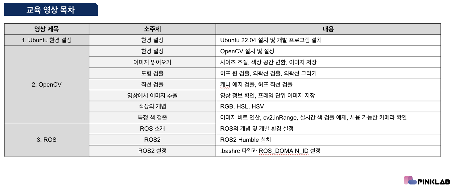 그리고 사전 영상 교육은 Ubuntu의 기초, opencv, ROS2의 기초를 전달하려고 노력했습니다.