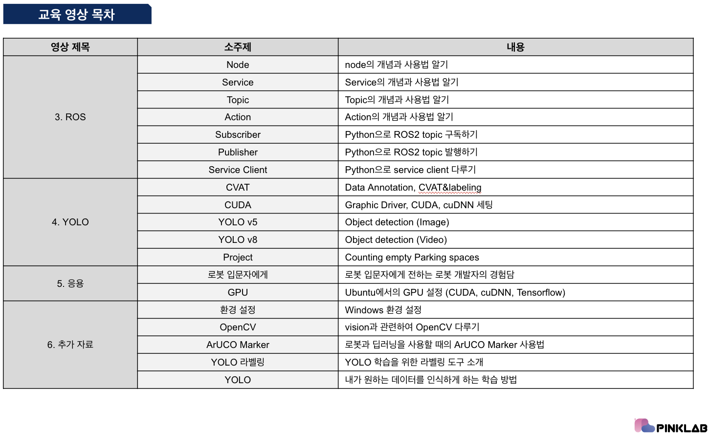 그리고 사전 영상 교육은 Ubuntu의 기초, opencv, ROS2의 기초를 전달하려고 노력했습니다.