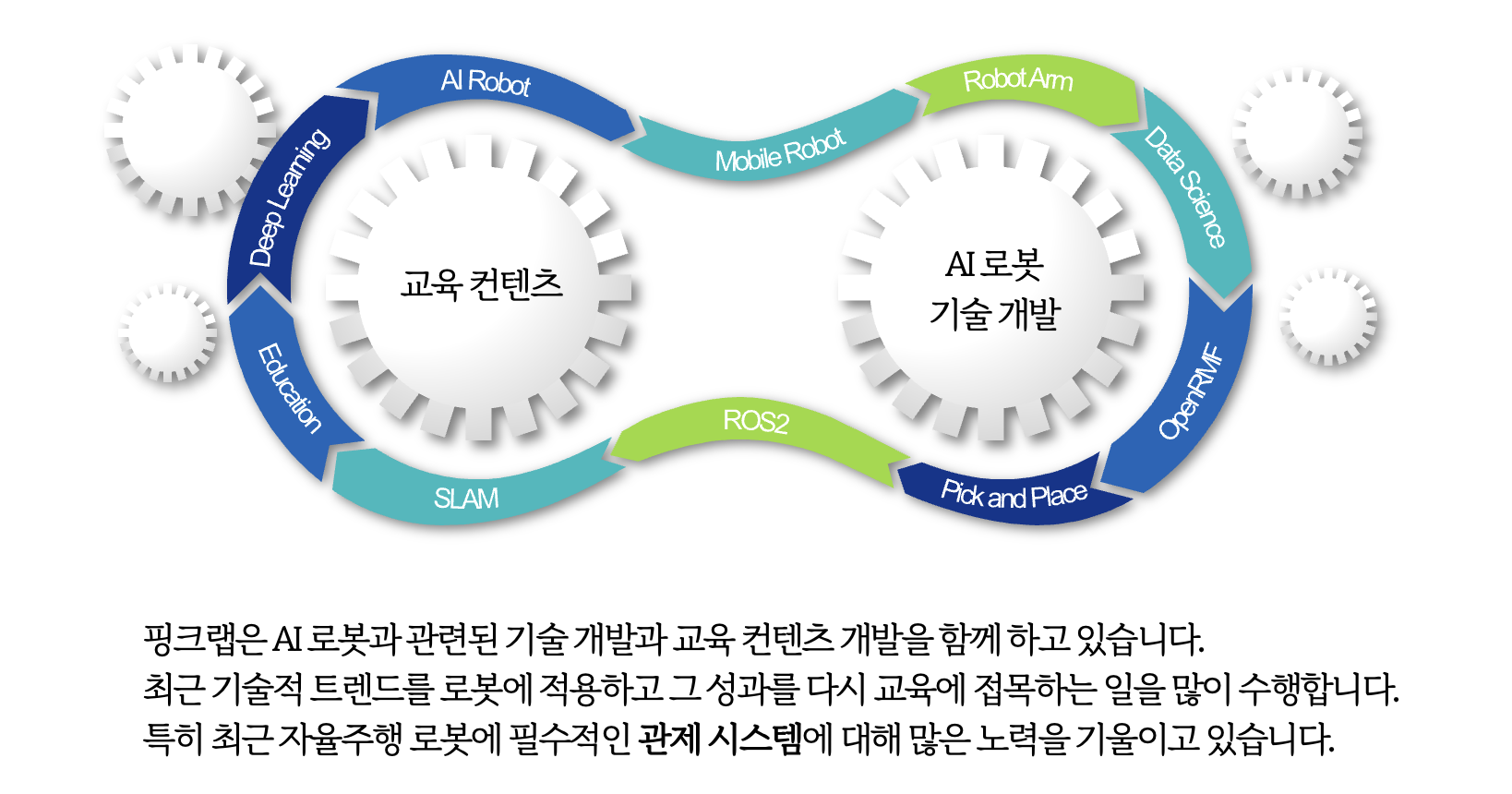 그 후 교육컨텐츠와 각종 행사들, 그리고, AI 로봇 관련 기술개발들을 했습니다. 특히 최근에는 관제시스템에 대한 많은 성과를 가지게 되었습니다.