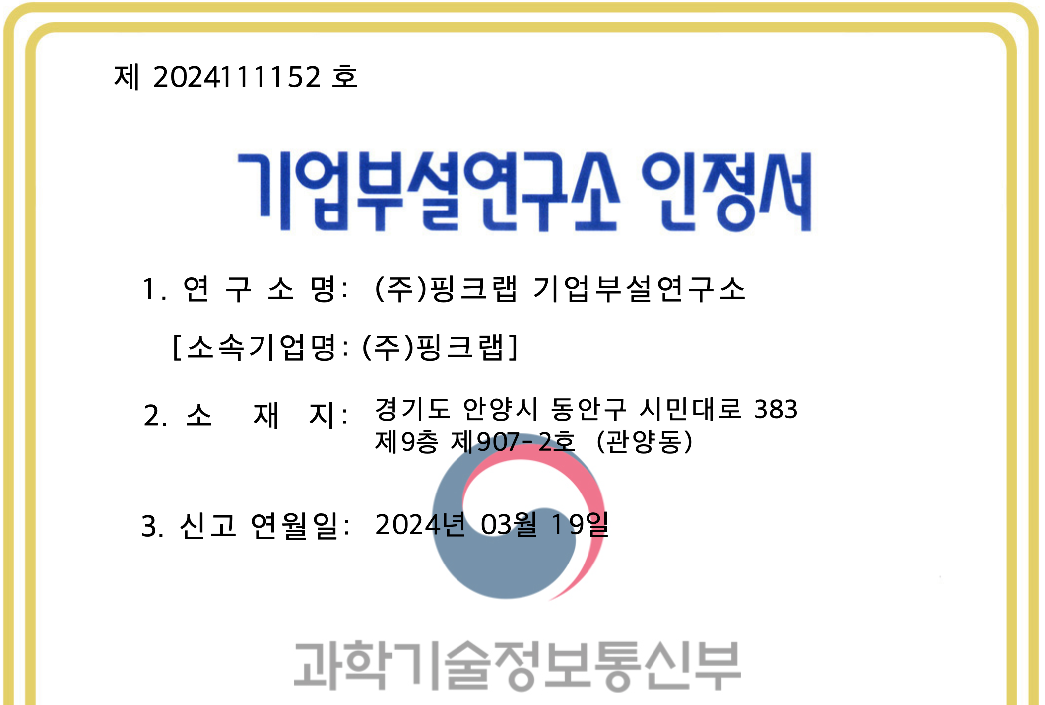 사실 핑크랩은 원래 1인 기업이었습니다.ㅠㅠ. 그게 일이 생기고, 그 일이 커지고, 뭐 그러면서 벌써 정규직만 5명, 비정규직으로 월급을 받는 경우는 4~6명 사이가 왔다갔다 합니다. 규모는 작은데, 뭔가 계속 일들이 생기는.... 그래서 이러저런 고민을 하다가 핑크랩이 드뎌 기업부설연구소 인증을 받게 되었습니다.