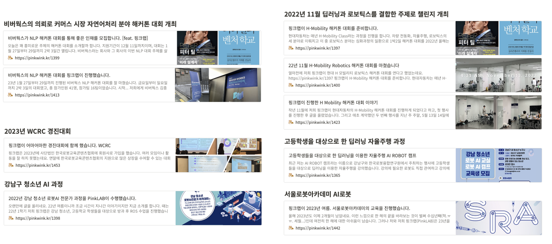 핑크랩이 수행한 교육관련 경진대회 등의 행사 및 단기성 교육들