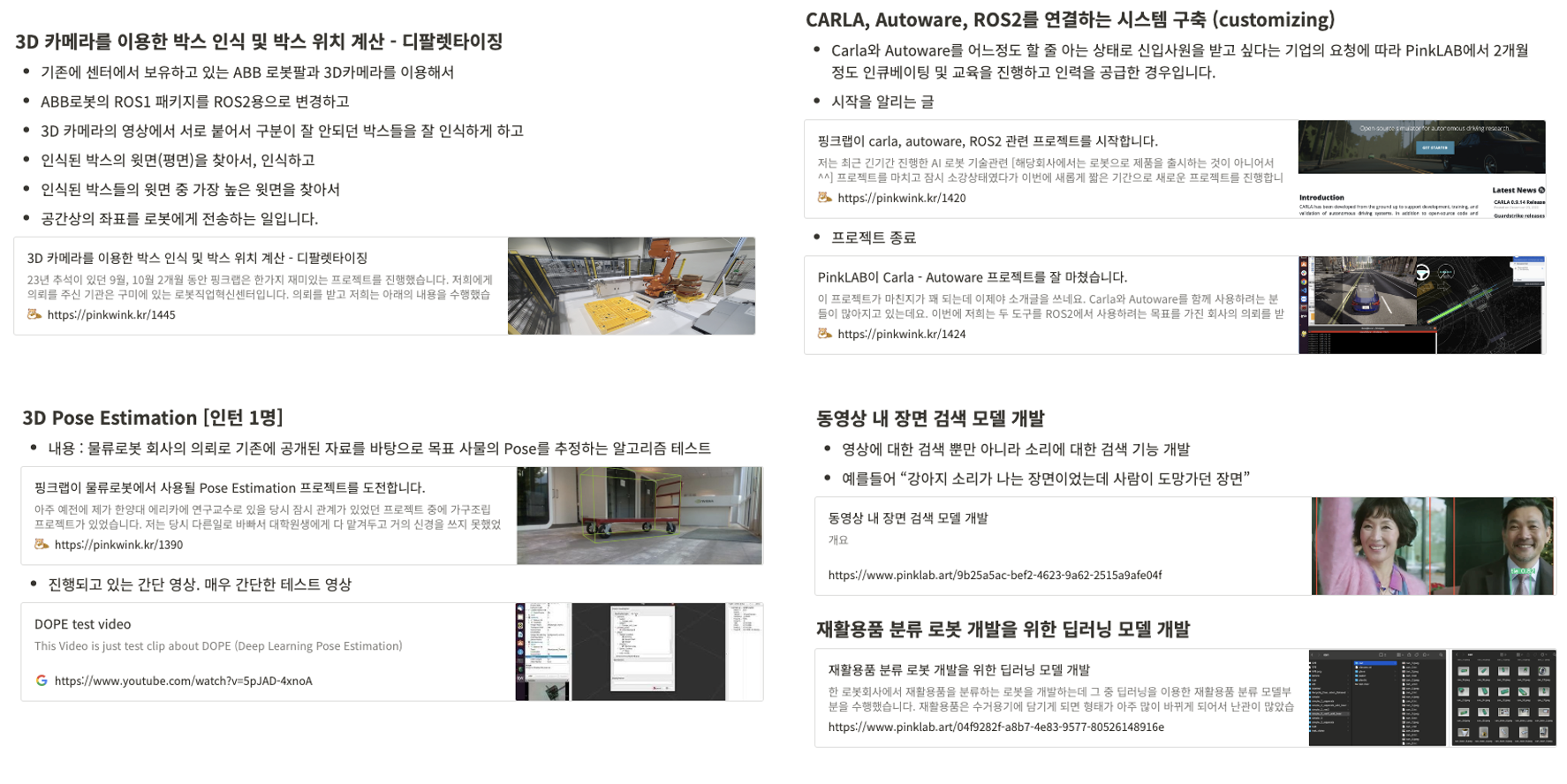핑크랩이 수행한 역대 기술개발