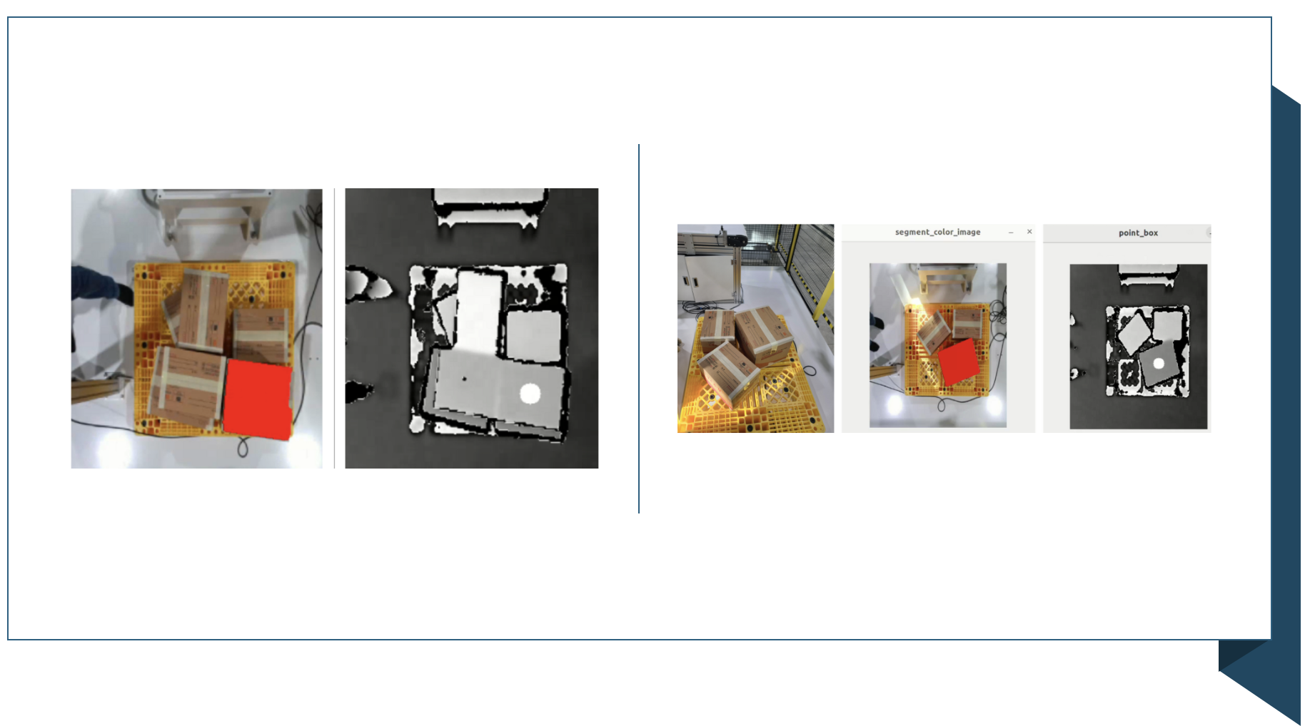 3D 카메라와 산업용 로봇팔을 이용해서 물품을 정리하는 디팔렛타이징 프로젝트를 또한 진행했습니다. 규모는 조금 작은 프로젝트였지만, 여기서 익힌 3D 데이터를 다루는 방법을 가지고 추가로 기업 교육도 2건을 진행했었습니다.