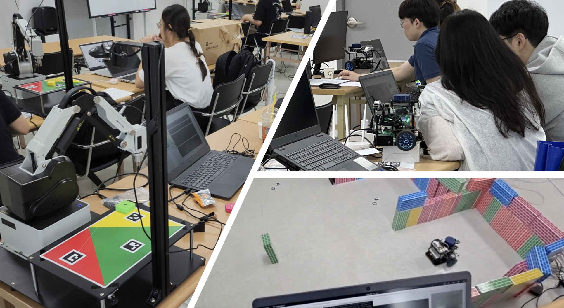 23년 여름에는 서울로봇 아카데미를 한달간 진행했습니다. 수업은 2주 정도, 프로젝트 멘토링을 2주정도 했습니다. 참가자들은 주행로봇과 로봇팔을 모두 이수하도록 했습니다.