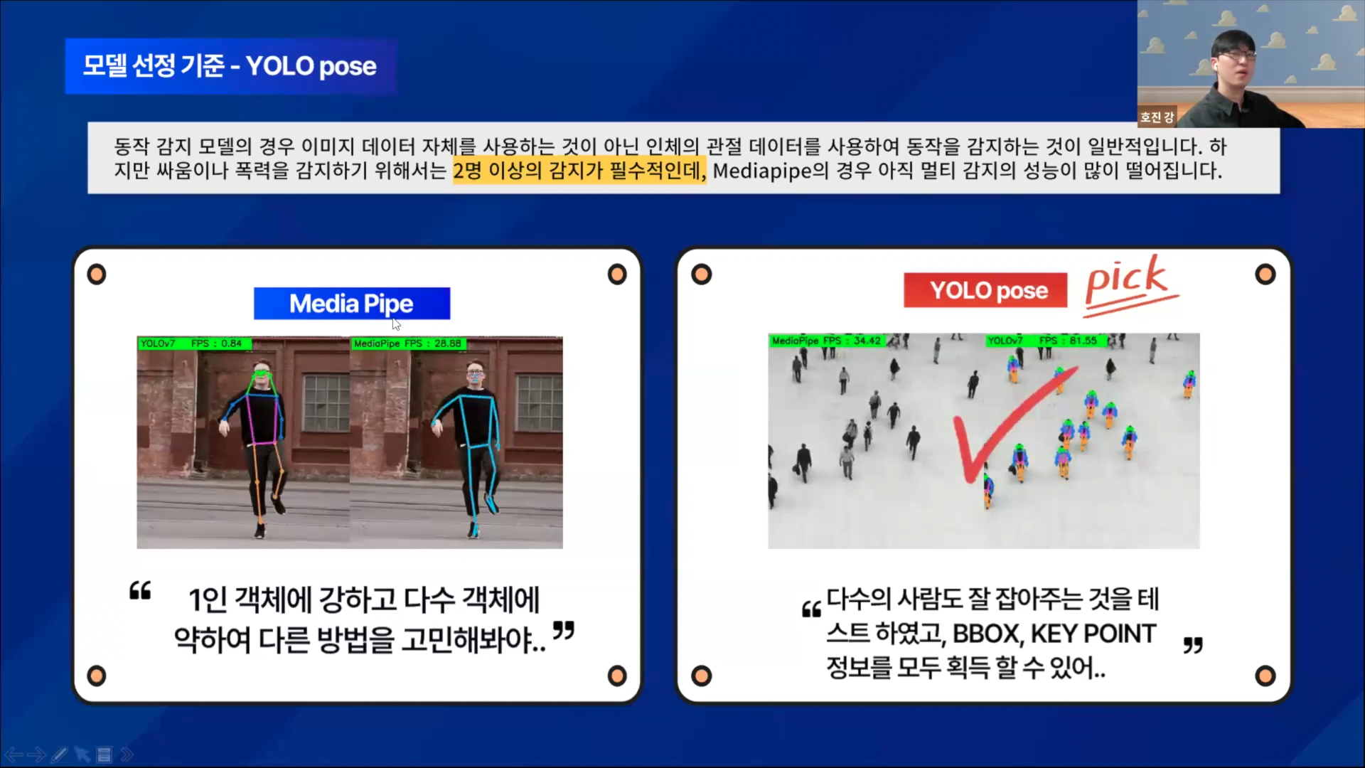 이번 팀은 영상에서 사람의 행동을 기반으로 위험상황을 경고하는 시스템을 만들고 싶어한 팀입니다.