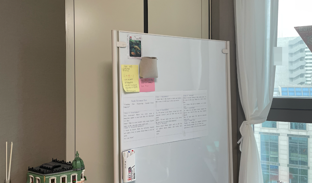 그리고 생각의 정리를 도와주는 화이트보드를 세로형 이동형으로 잡아 주었습니다.~