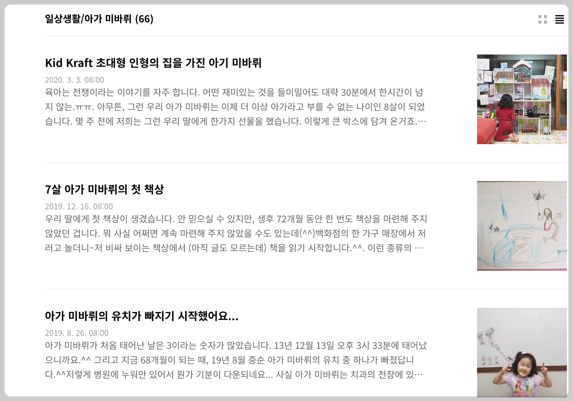 제 블로그에는 아주 어릴때부터 저희 딸을 위핸 글들만 모아두는 곳이 따로 있습니다. 그 글이 2020년 3월을 마지막으로 더이상 업데이트를 하지 않았네요