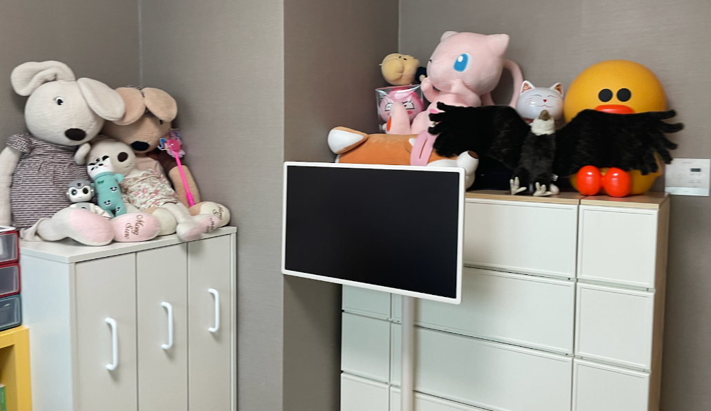 그리고 TV를 지방에서 보고 싶을 때를 대비해서 이동형 모니터도 배치를 하고 넉넉한 수납공간을 잡아 주었습니다.