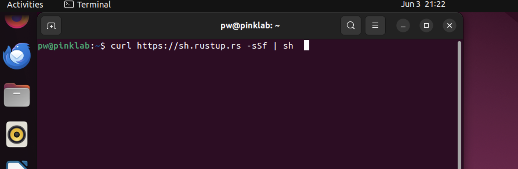 curl을 이용해서 rust를 설치합니다.