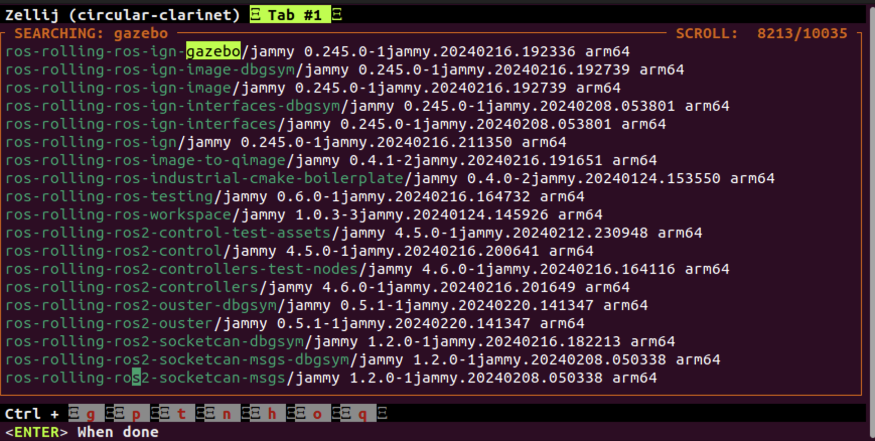 또 하나의 기능은 이렇게 스크롤이 심하게 된 터미널 화면에서 strl + s를 누르면 터미널 결과에서 검색기능이 제공됩니다.