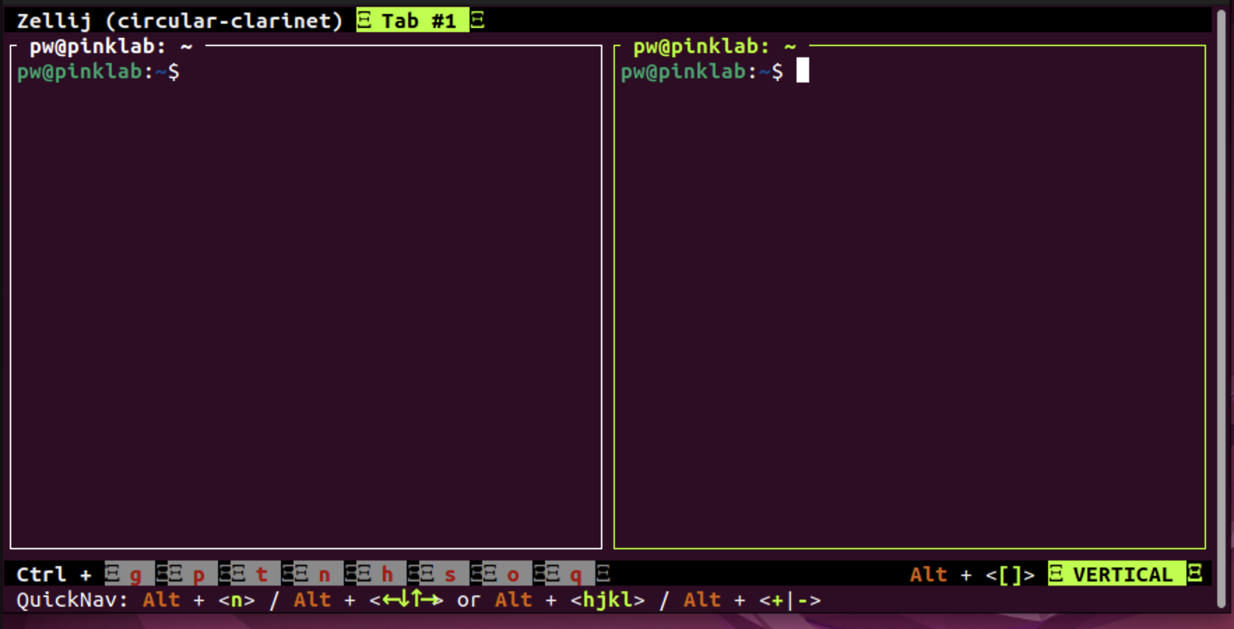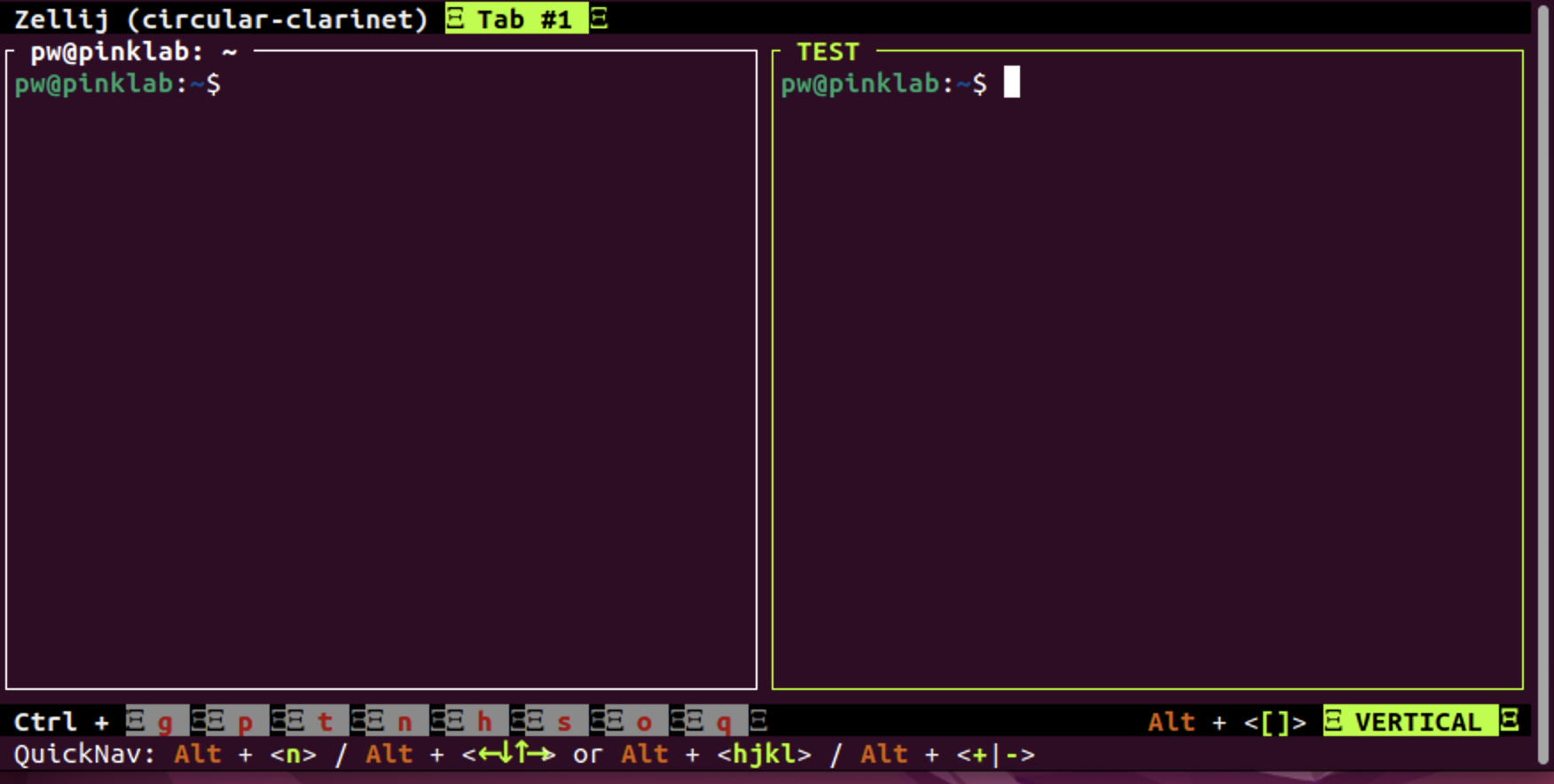 설치가 잘되면 zellij라고 실행을 하면 됩니다.