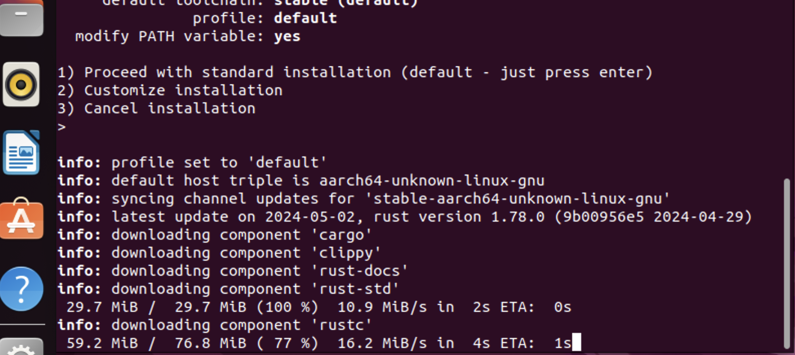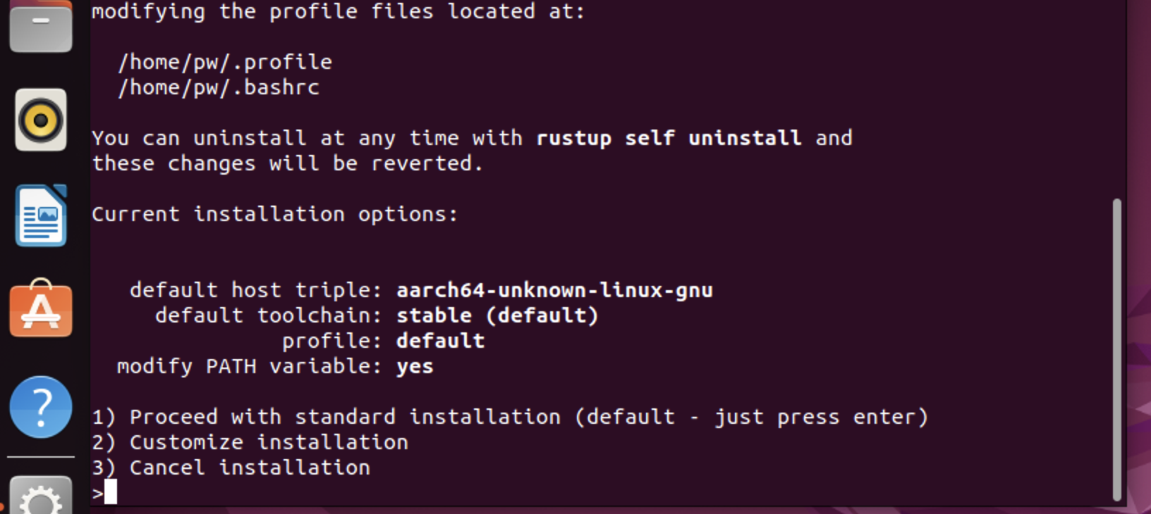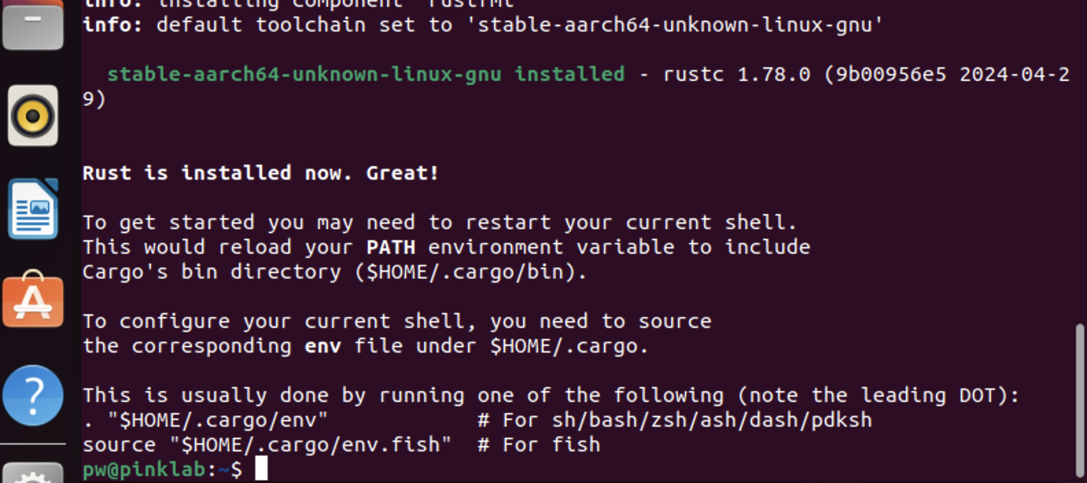 그럼 이렇게~~ 설치~~~ 그러면 rust라는 아이의 빌드 시스템인 cargo라는 아이가 설치가 됩니다.