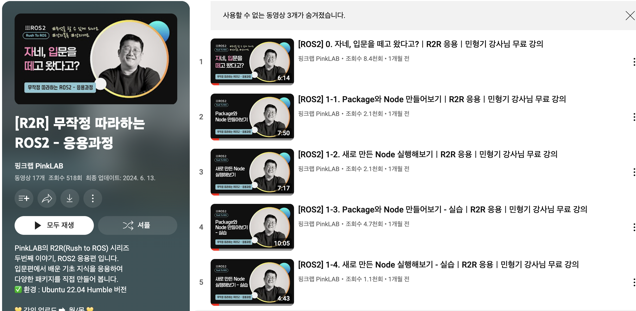 몇 달 전부터 저는 ROS2 강의 영상을 유투브에 업로드하고 있습니다. 초심은 단 한 명의 구독자가 있더라도 업로드를 멈추지 않겠다입니다. 꼭 지킬려고 노력하고 있습니다.^^.