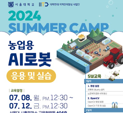 7월초 일주일 도안 서울대학교 시흥캠퍼스에서 전국의 30여명의 농업관련 전공인 대학생들을 대상으로 AI로봇 교육이 열렸습니다. 저희 핑크랩이 이렇게 또 좋은 행사를 진행할 수 있어서 참 좋았습니다. 이런 행사를 저희 핑크랩이 진행할 수 있도록 해주셔서 또 고맙습니다.