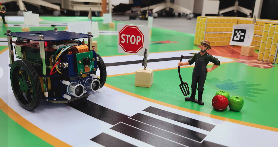 그래서 시나리오를 구현하도록 했습니다. 어떨때는 길을 따라가다가, 혹은 아루코마커를 통해 길을 따라가다가, 그 상태를 중단하고, 딥러닝을 이용해서 임무를 수행하고, 다시 딥러닝을 이용한 인식 임무를 종료하고, 다시 주행 모드로 주행을 하는 형태로 진행하도록 유도했습니다. 이렇게 해서 하나의 기능이 아니라, 다양한 기능으로 다양한 상태를 정의하고 그 상태를 어떻게 이어서 시나리오를 구현하는지를 체험하고 개발할 수 있도록 유도했습니다.
