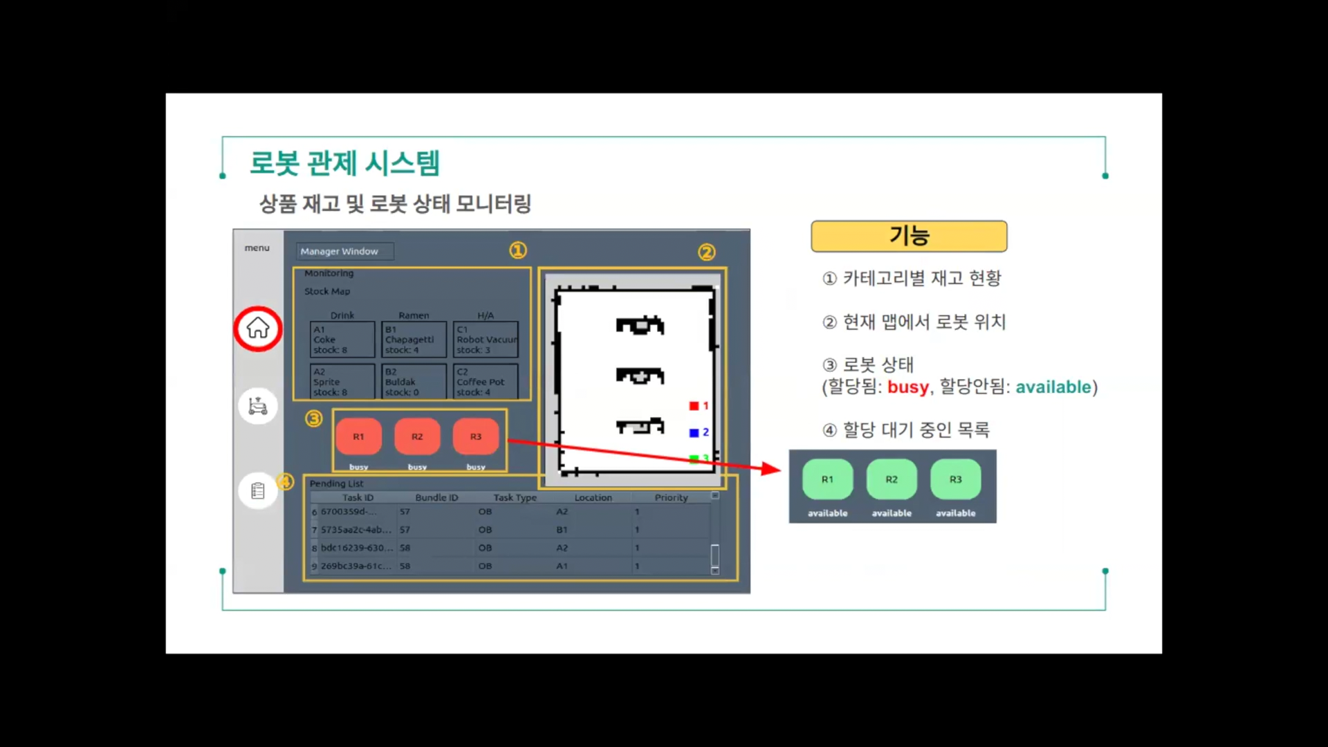 또한 관제시스템에 대한 GUI도 구현을 해 두었습니다.