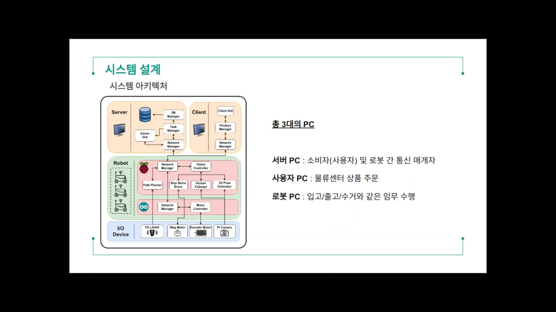 서버 역할을 하는 PC와, 사용자 GUI, 그리고 라즈베리파이4가 있는 robot의 PC 역할을 하는 원격 PC를 두었습니다.