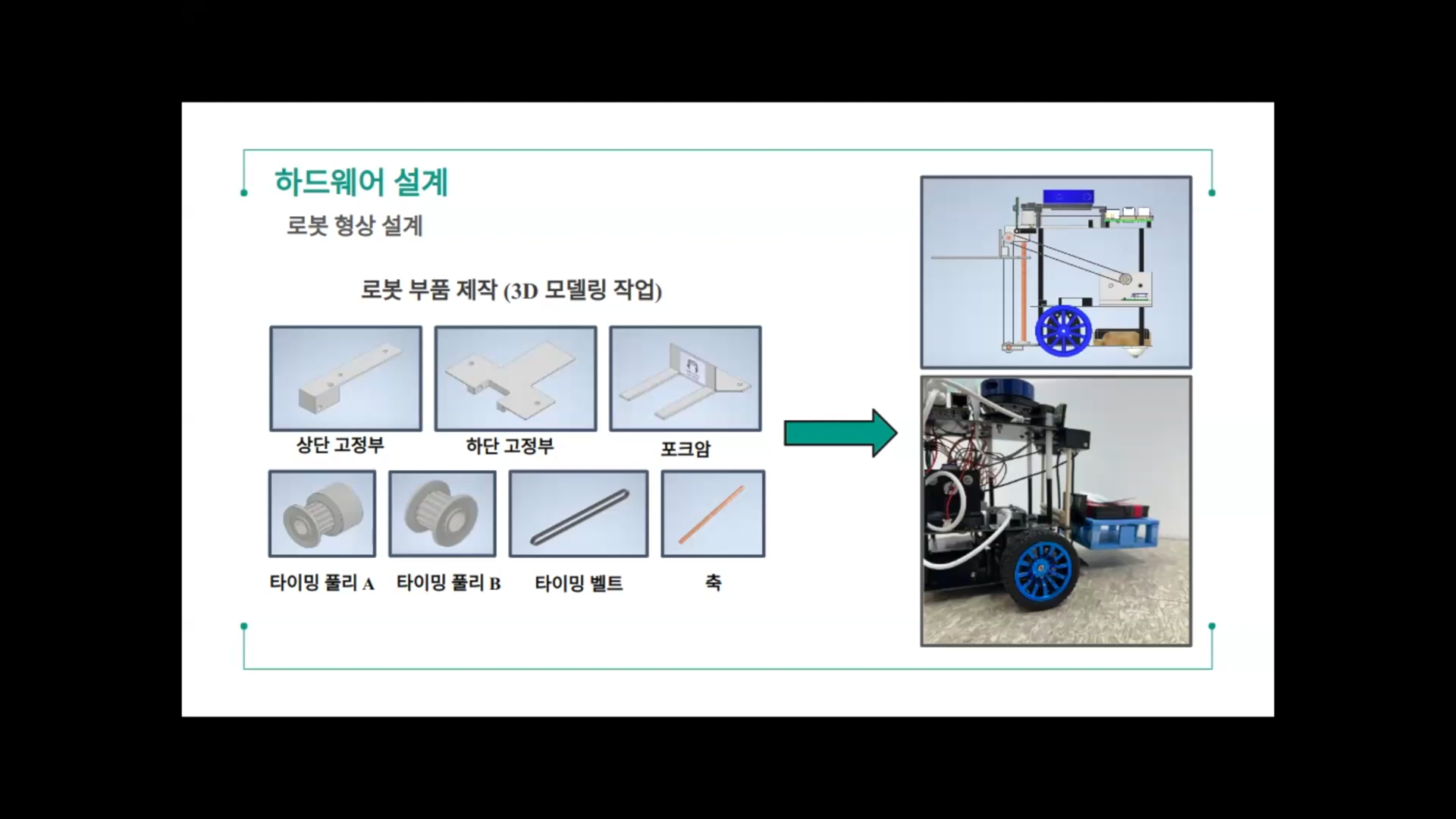 특히 이 팀은 수업때 제공되는 주행로봇을 개조해서 지게차를 만들었습니다.