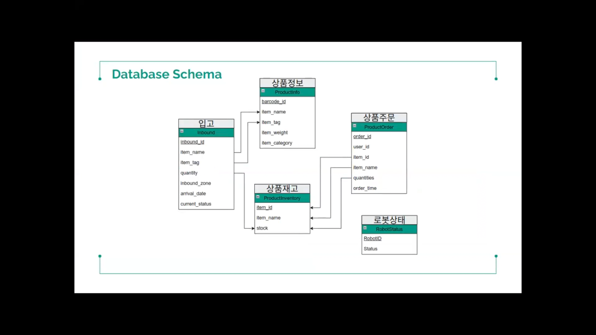 그리고 물류창고의 관리를 위한 다양한 데이터를 DB로 저장, 관리하고 있습니다.