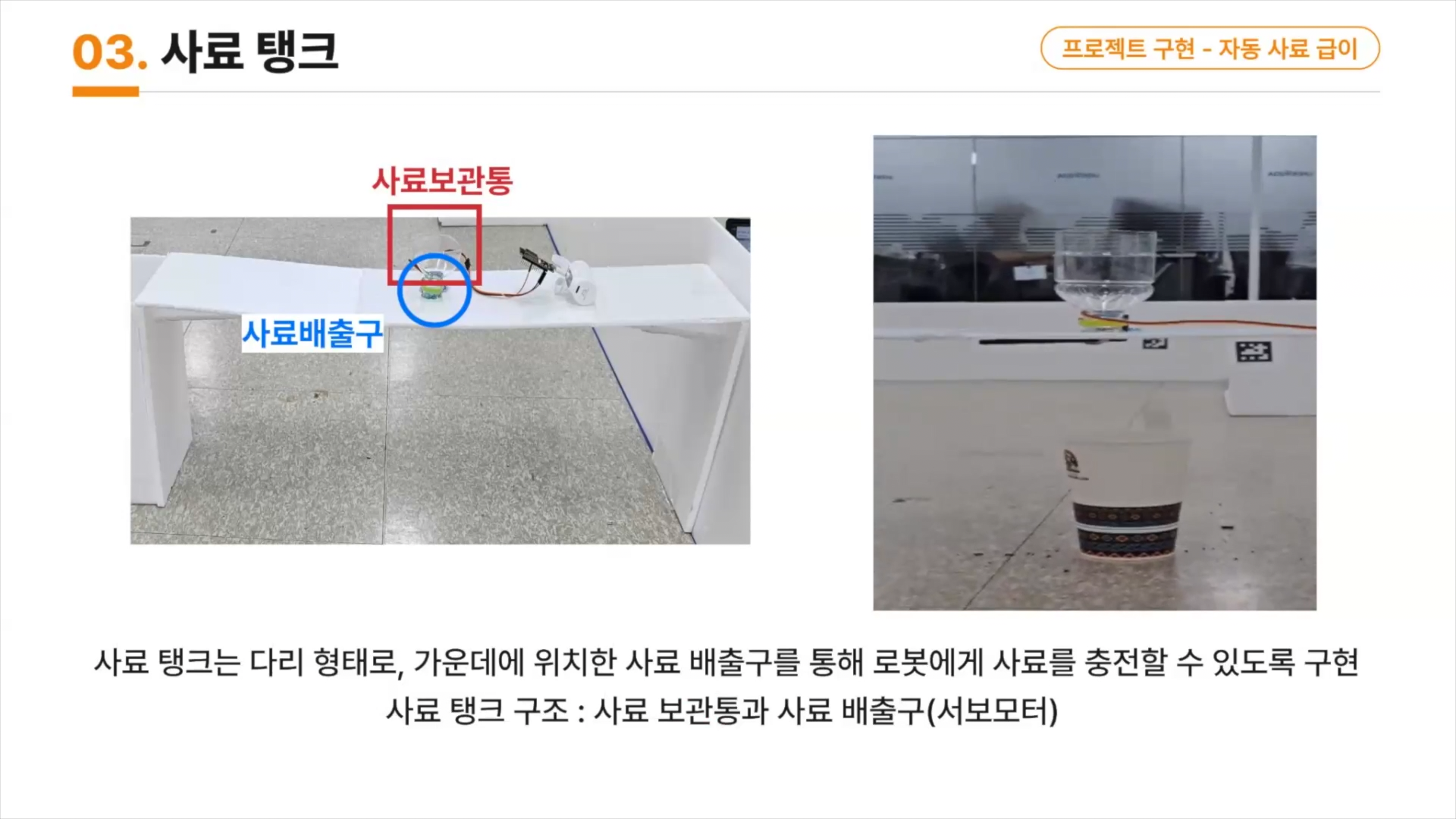 사료보관통에서 로봇으로 사료를 공급하는 장치도 직접 만들었네요^^