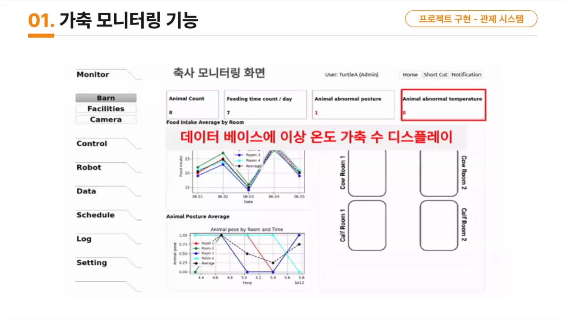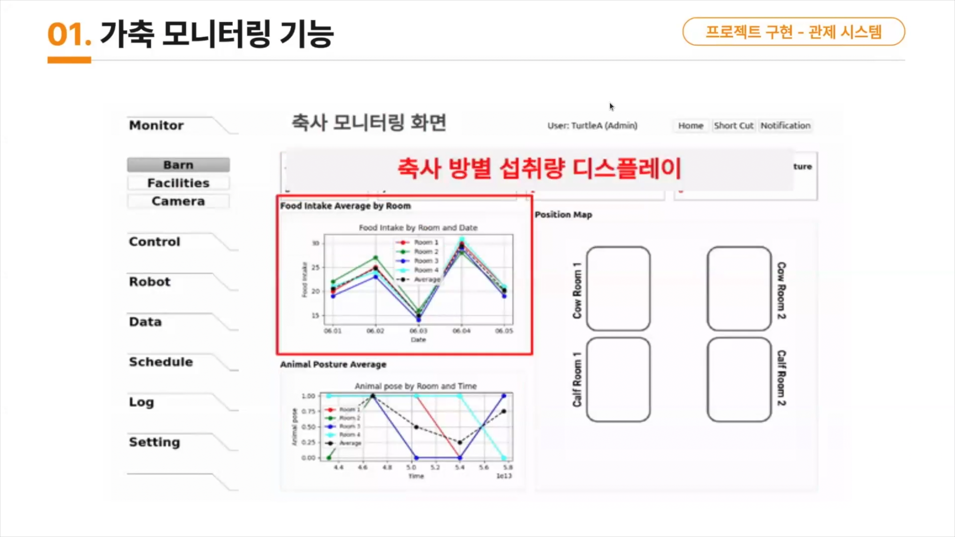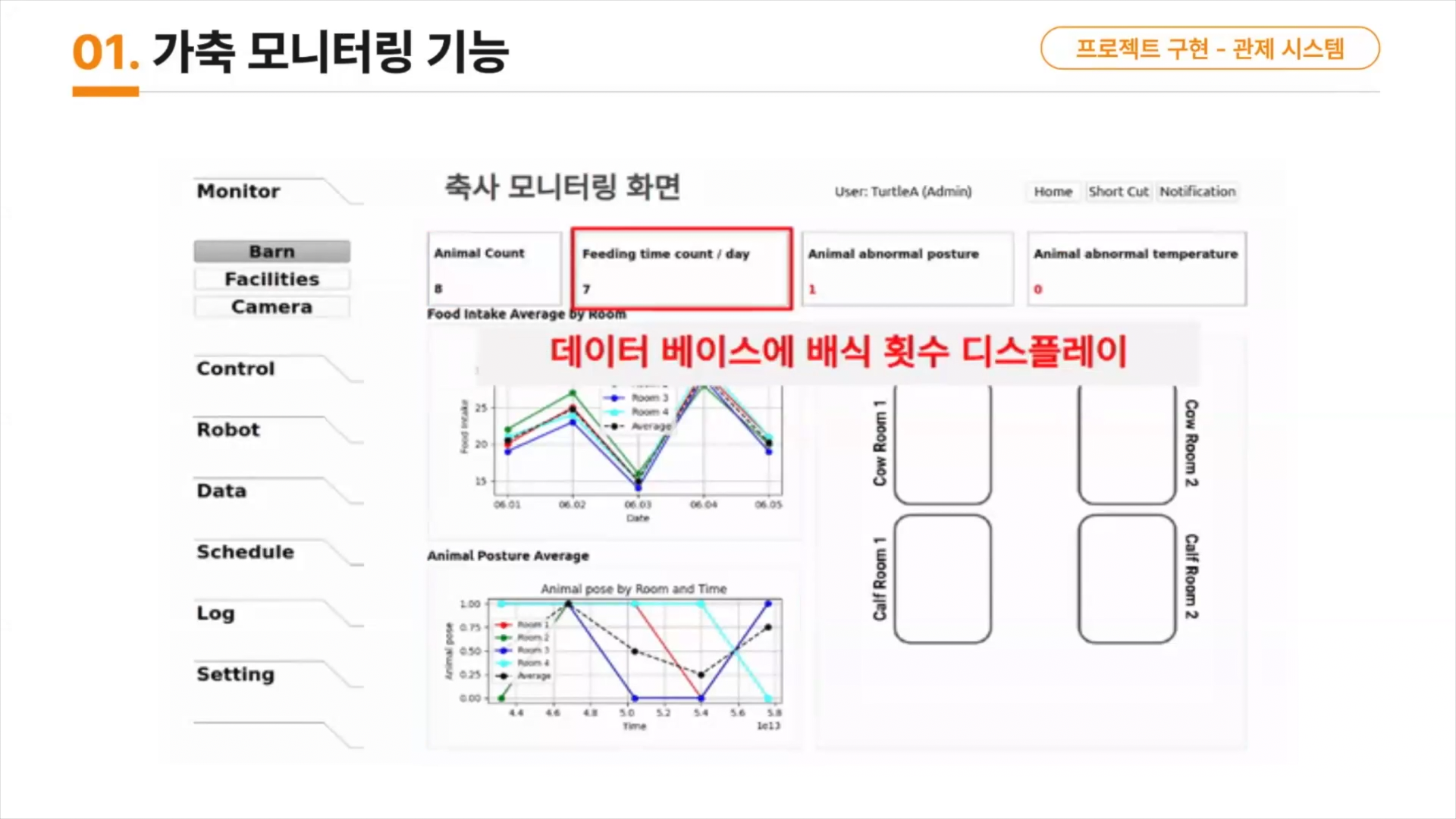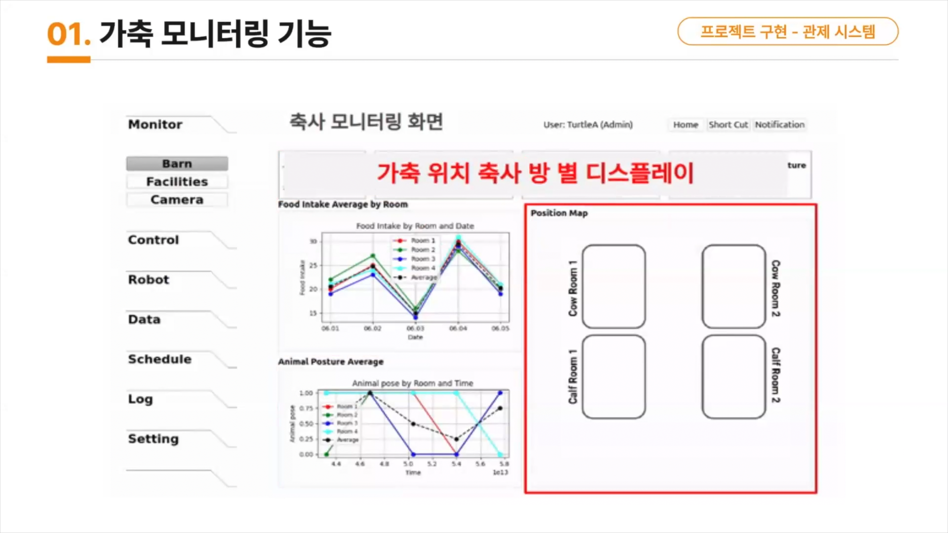 가축의 공간별 CCTV를 모니터링하는 기능,