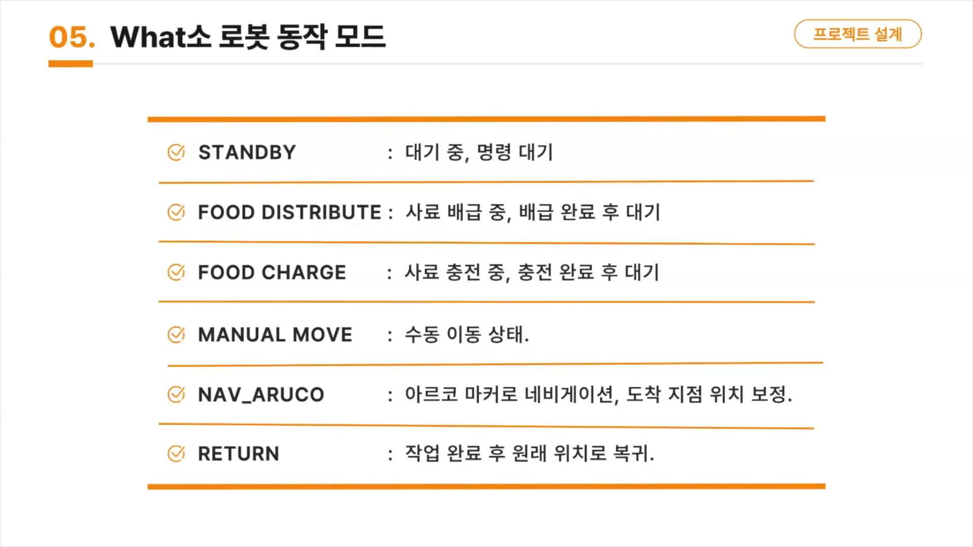 그리고 로봇과 시스템의 동작 모드를 고민하고~
