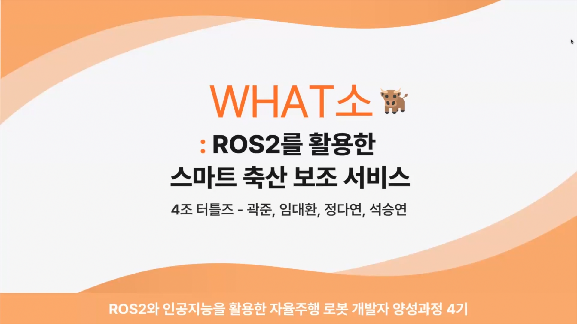 팀 이름이 왓소(WHAT소)입니다. ROS2를 활용한 스마트 축산 보조 서비스가 정식 명칭입니다.^^