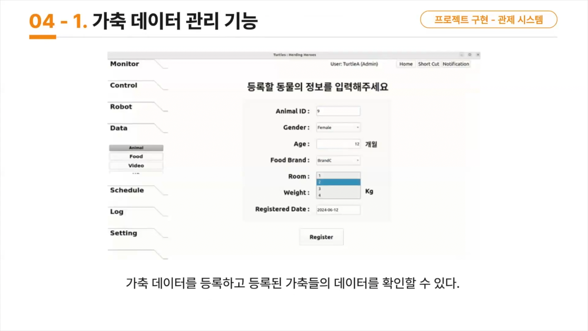 사료 데이터도 관리하구요~