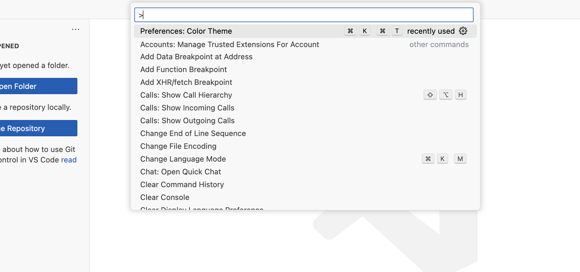 명령팔레트(CTRL + SHIFT + P)를 실행한 후