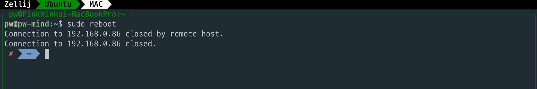 그리고 원격으로 접속한 우분투를 재부팅시킵니다.