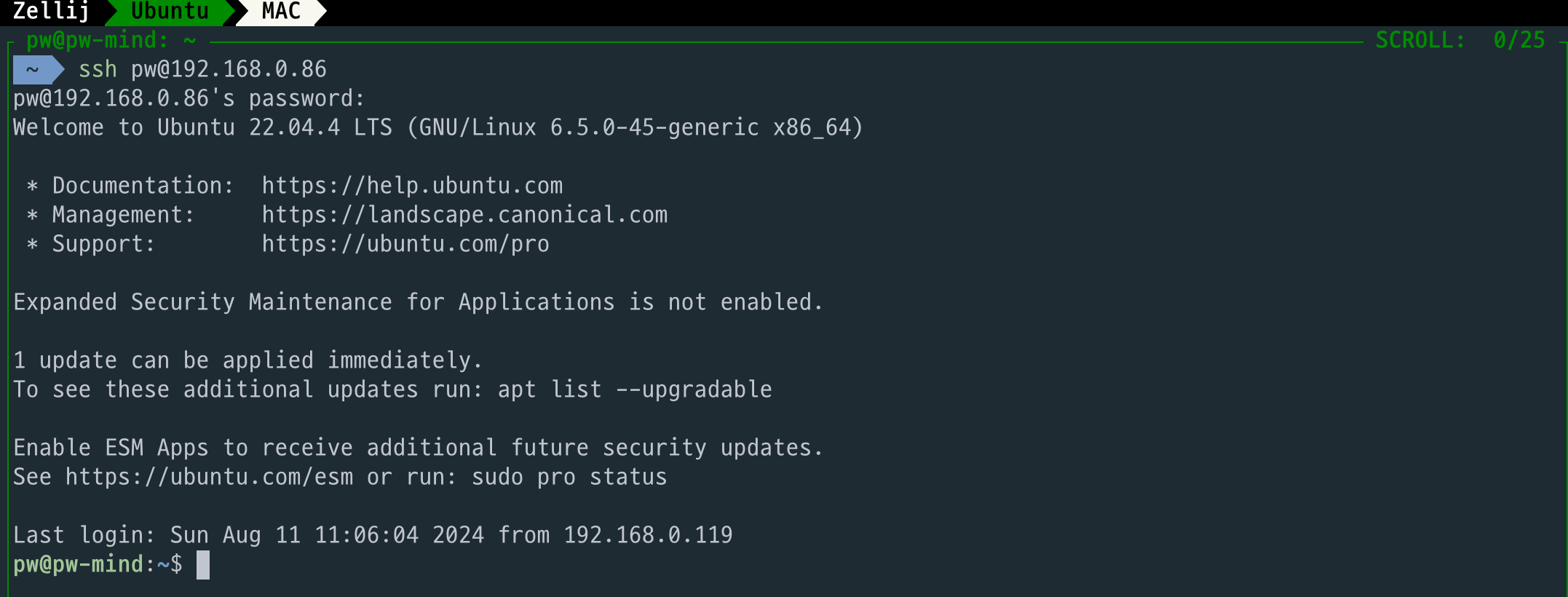 일단 ssh로 우분투 PC에 접근합니다.